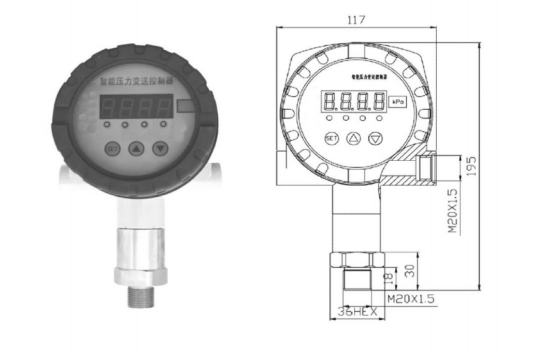 智能壓力控制器是及集壓力測量,顯示、輸出、控制于一體的智能數顯壓力測控產品。該產品為全電子結構,前端采用帶隔離膜充油壓阻式傳感器,輸出信號由高精度、低溫漂的放大器放大處理,送入高精度的A/D轉換器,轉換成微處理器可以處理的數字信號,經過運算處理的信號控制四路電器開關,對控制系統壓力進行測控。該產品使用靈活,操作簡單,安全可靠,廣泛應用于水電、自來水、石油、化工、機械、液壓等行業,對流體介質的壓力進行測量顯示和控制。