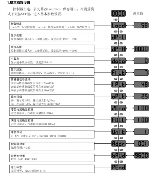 智能壓力控制器參數分為3組,進入不同的參數項即可對各個參數進行設定。